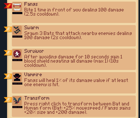Weapons and Items have been limited to five (5) each. As more and more generic weapons get added to the game, full generic weapon builds break game balance. This change also makes it easier to max out on equips already held. While it was funny to buy everything in the store, these limits are a huge boost to game balance. More content will come which will allow players to adjust the number of weapons that can be purchased at the tradeoff of other slots (and vice versa).Combat numbers have been increased by an order of magnitude. This helps with integer based computations and small percent-based modifiers not having any effect in some cases (looking at you damage badges).Combat is something that will continue to evolve as we play test (user feedback is also welcome).