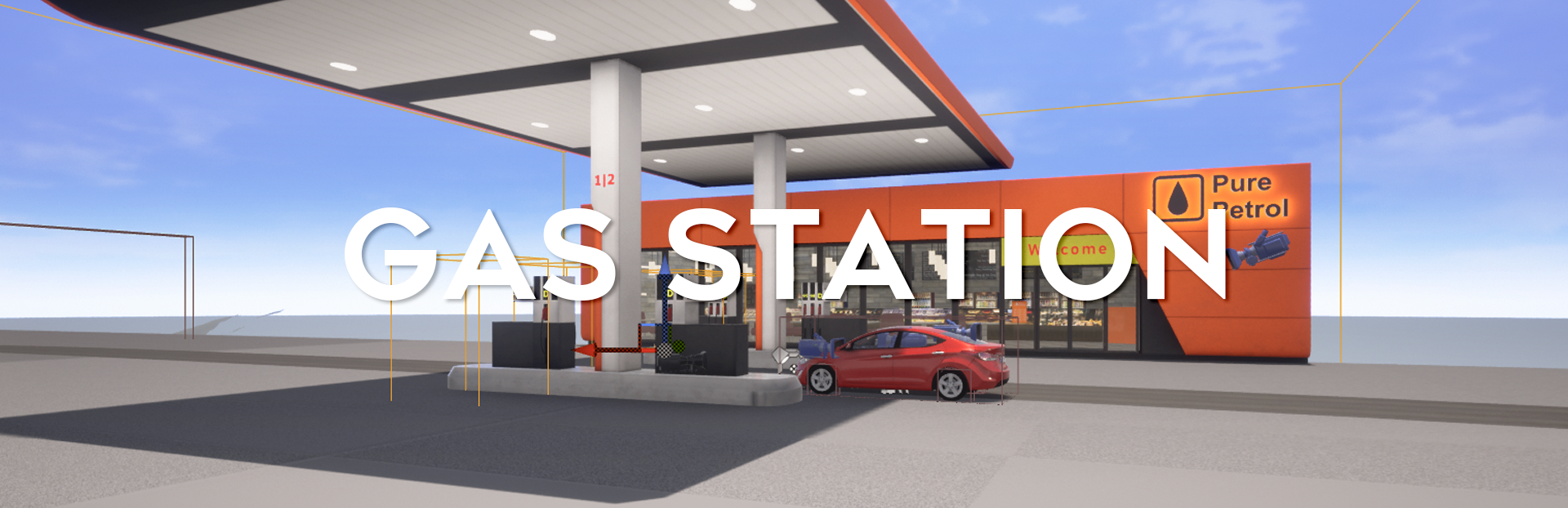 The player arrives at the gas station, drives up to the gas station they need, depending on the type of fuel and the side of the fuel tank hatch, the Overlap event is triggered.