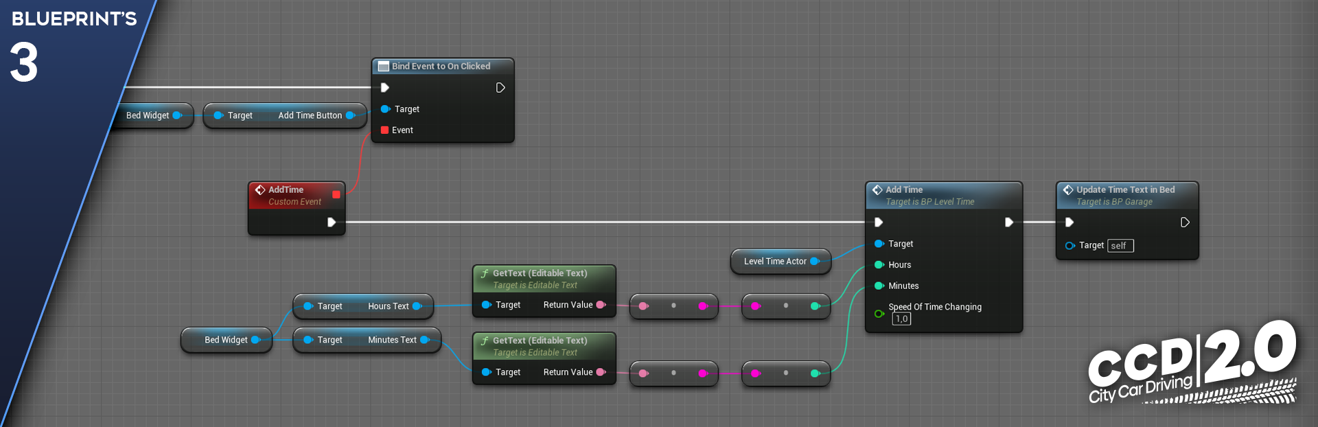 Here, the player’s car is added to the garage’s array of cars (under the zero index), and the player themselves gets the opportunity to use the garage’s functionality. Bed: allows you to rewind time by calling a function in a separate class that controls time at the level.