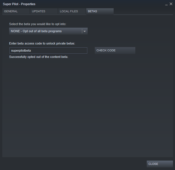 Enter superpilotbeta as the access code and hit the Check Code button