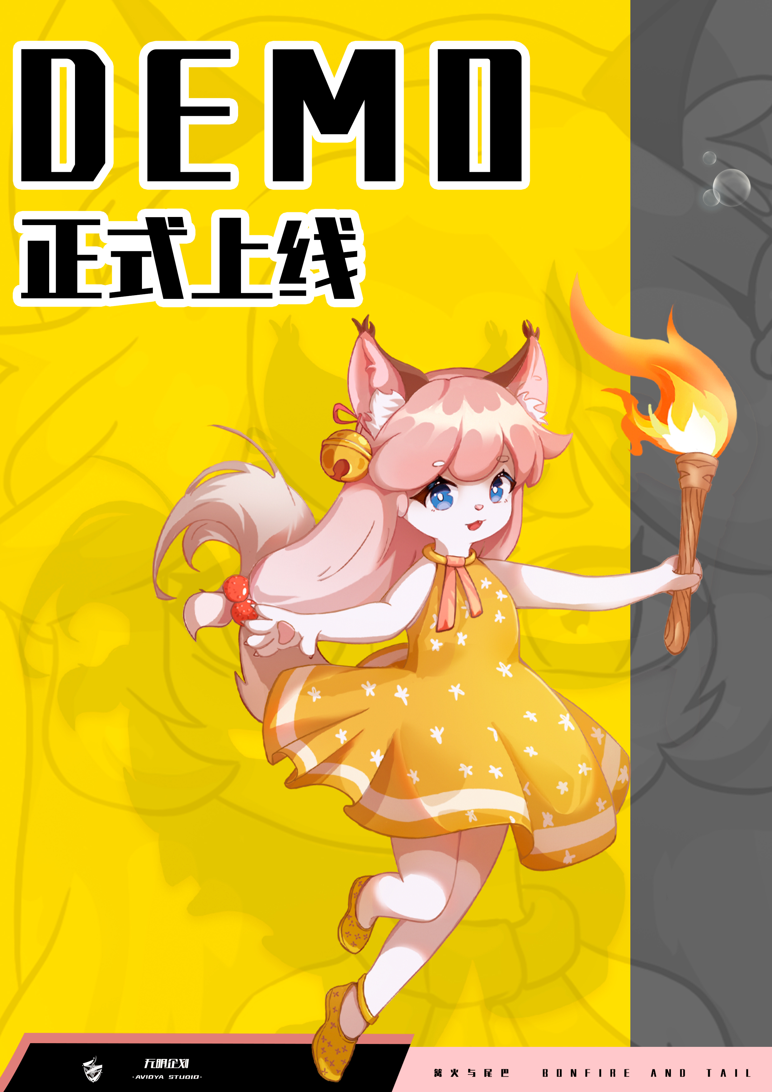 The demo of 'Bonfire and Tail' by avidyastudio has been released! 🎉 This demo finally caught up and was launched at Steam. In game updates: 1. Add a tutorial for beginners. 2. Optimize the lobby and in-game UI. 3. Added one character and three headgear options. 4. Modify the type of barrage in the barrage game. 5. Modify the bounce height in Treading Waves to win the gold medal. 6. Modify the final game scoring mechanism and add interactive objects such as Golden Cage Grass; Remove player upgrades and add drop gain items; Modify the campfire capacity. 7. Bug fix. Open steam store and searches for "Bonfire and Tail" to download the official demo. If you have a preview version, you can update it to play with new content. We hope you can provide us with your valuable feedback. We really need to listen to your voice! And some accessories can only be inherited to the official version of the game by players who have demos. Therefore, those who follow us please go in and claim your testing reward. Thank you for supporting us, everyone. Here avidyastudio, we bow to everyone! Friends who have not yet added a wish list please click on "Add Wish List" in order to get the latest information about the game as soon as possible. The QQ group for players is also gradually opening up, and we will recently arrange new video solicitation activities within the group. Selected players can obtain official peripheral products. (By the way, MoDian crowdfunding is still ongoing, and there are even cheaper prices and exclusive gifts to get! Also, follow our Bilibili account and there will be activities starting tomorrow!) Bonfire and Tail Player Communication QQ Group 1:720671790 QQ: 1697288014 WeChat: avidyastudio Email: avidyastudio@outlook.com Bilibili: æ— æ˜Žå·¥ä½œå®¤