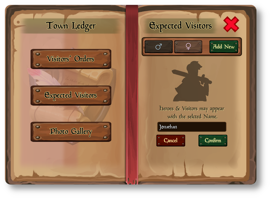 You can use the tabs in the menu to assign specific names to your Visitors / Heroes and have your friends and characters from your favourite games join the town as fresh adventuring Heroes.