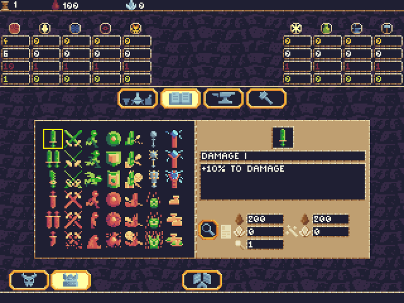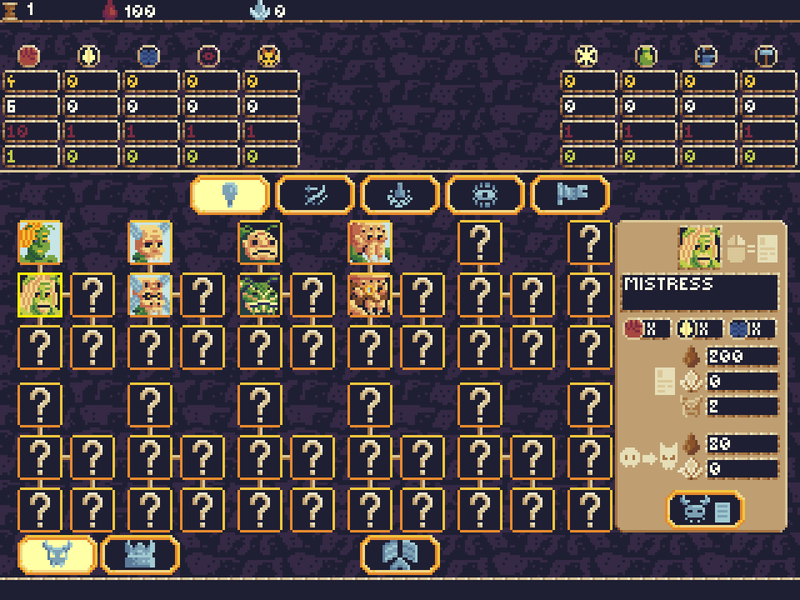 Some time ago I was mentioning about making a panorama screen and whether this is necessary or not. And I mentioned about city builder module. Interested in that, I make another concept of such screens, where every town generates some point like "Units: Brute" or "Kindom: Magic", and if there are enough of them, the current technology level go up and players can unlock new units or items. Technology screen: