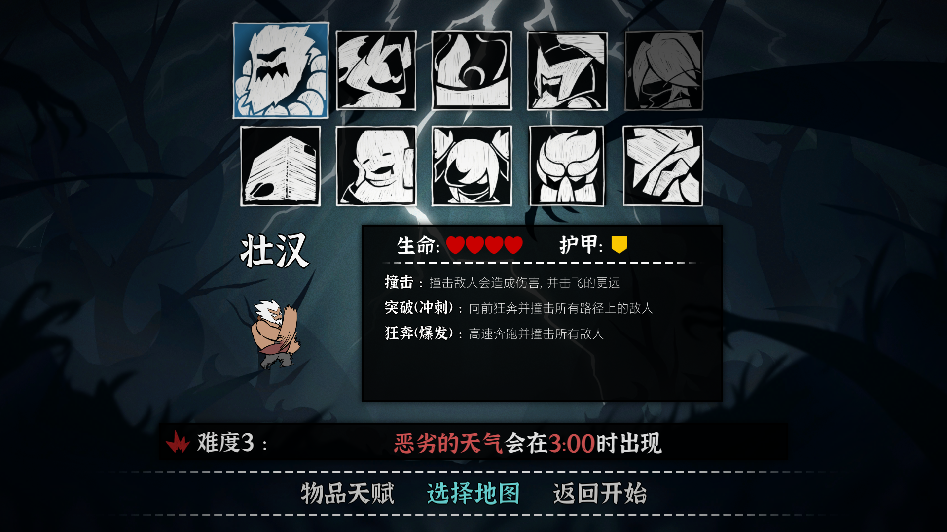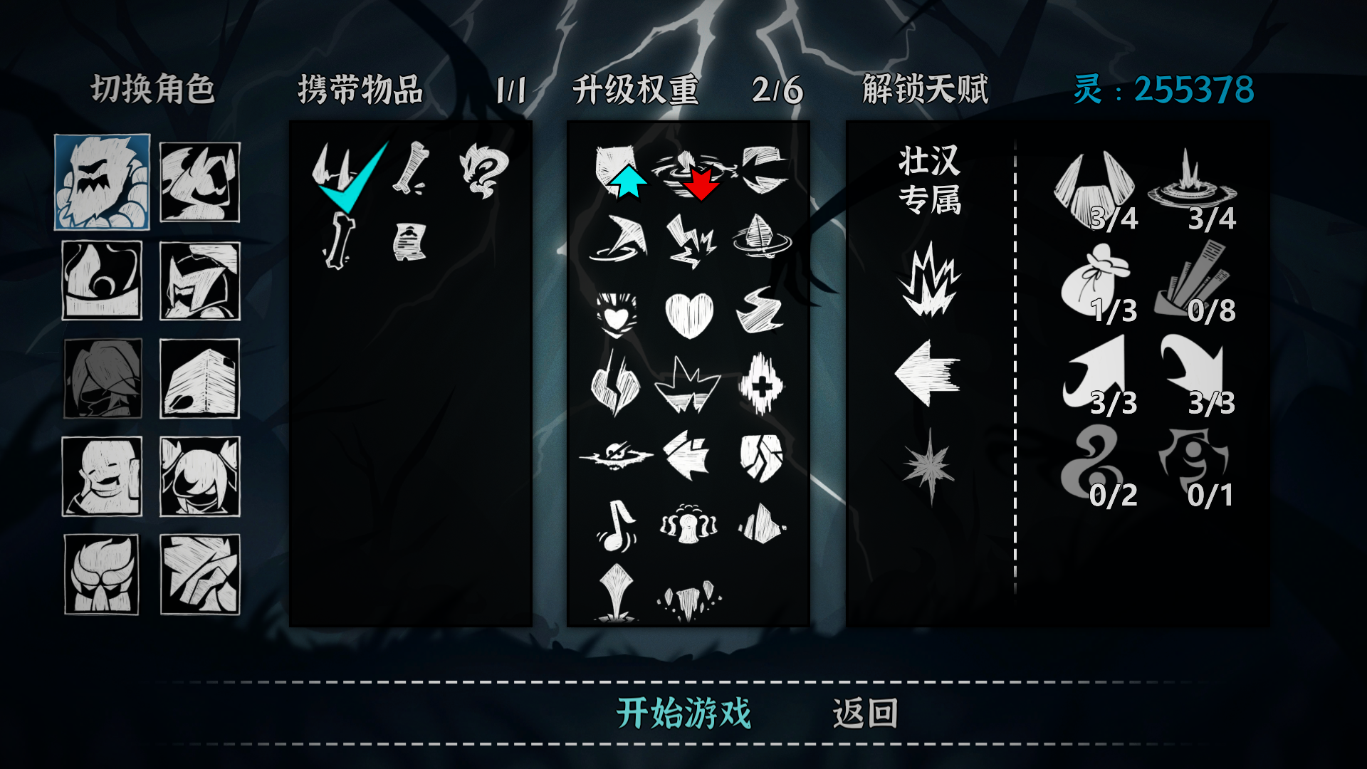 Once you've unlocked items and upgrade weights, you can tweak them in the item talent screen. Each character has their own settings. In the item bar, left-click to carry items and right-click to cancel. Unlocking talents lets you carry more. In the weight column, left-click to increase the appearance rate, right-click to decrease.