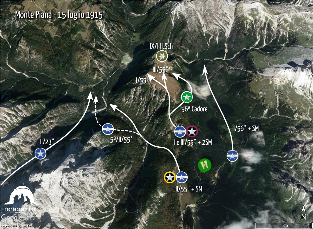 In the early morning of July 15th, the Italians started their counter attack. Their goal was to recapture Monte Piana.