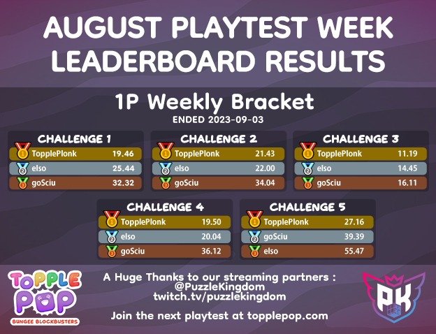 Our awesome friends at Puzzle Kingdom will be livestreaming a friendly competition and showcasing all the new features - be sure to check out their TopplePOP videos - they're lots of fun!