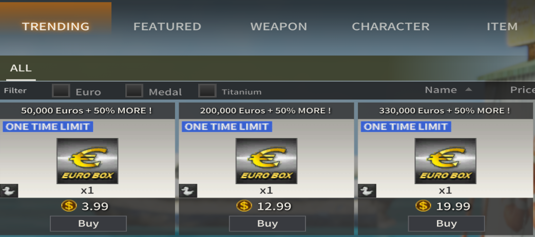 We are pleased to announce a limited-time 1st Anniversary Birthday Medal sale & 50% Euro sale on the in-game shop for all players. The sale will begin after the August update and will be available for a limited time only.