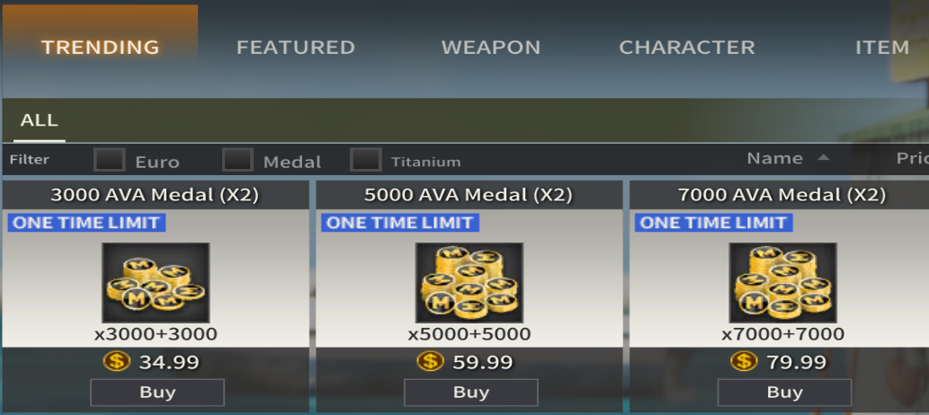 During the sale, you can purchase: > Double the amount of medals for the same price. > 50% more euros for the same price.