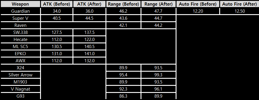 - New BGM addition - Bloodstains Option: Now toggled in-game rather than in Settings - Ranking Page Description added - Epic Tier Skins List added: > Verserk Sapphire, 870 Blue Dragoon, Desmodus Fullmoon, Bahamut Red Valkyrie, Raven Chrome, Super V Sci-FI, SIG MCX Grey Mud, X-plorer, X36 Mastery, X4A1 Platina, Temporal Origin, MA-47 Primavera, DT-42 Griffer, MA-47M Seroja, X24 Fleur-de-lys, V Nagant Engrave, Zebra Battle Rifle, AWX Panther, AWX Dreamcatcher, M1903 Valori, EPKO Starship, V Nagant Custom Fullmoon