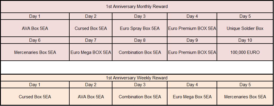*Note: The 1st Anniversary Attendance Reward System is cumulative. Rewards are accessible the day following attendance.