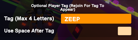 🔸 Added a "Tag" option to online settings, allows you to add a 4-letter tag to the front of your name, without having to change your Steam name (Blame Ronan for this idea, it caused the update to take a while lol)
