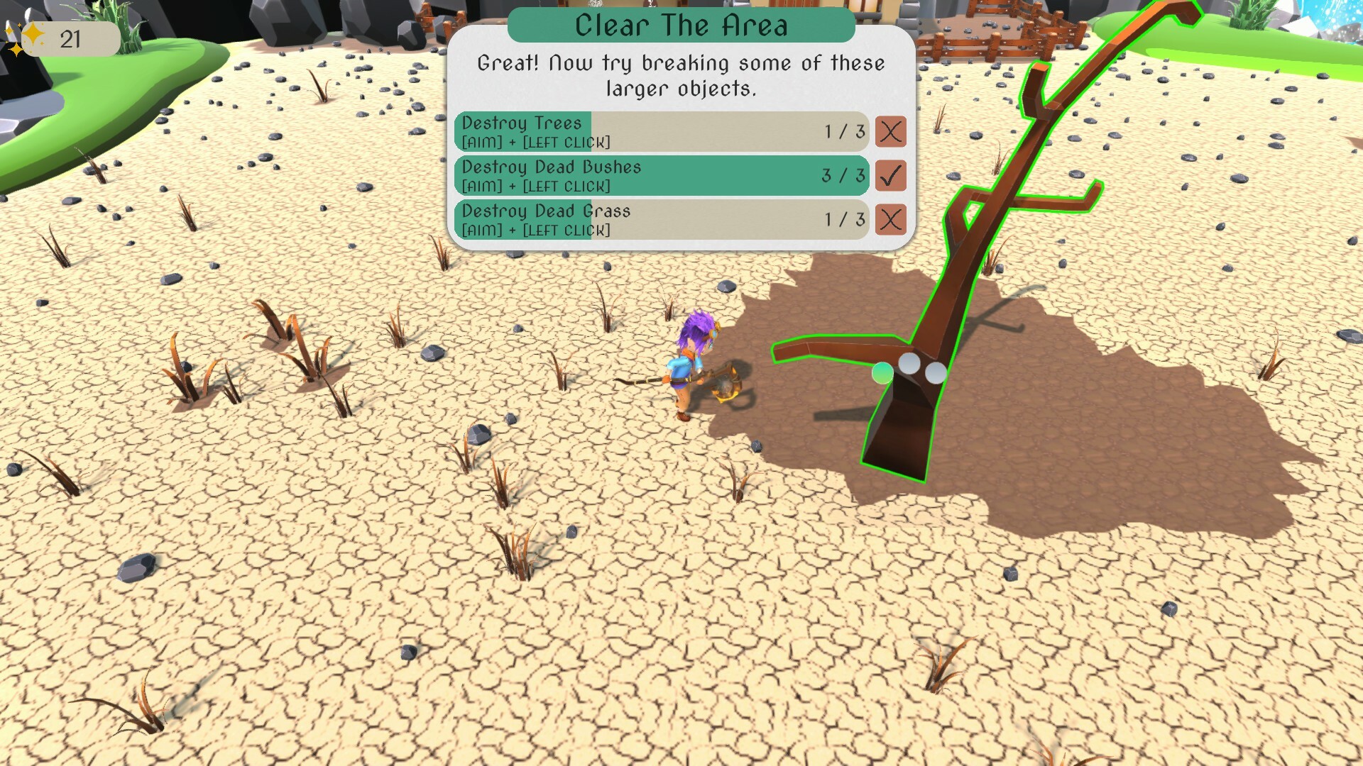 An important part of this process we discovered, is ensuring the player is getting the needed feedback for when an instruction has been followed, which brought about the addition of these progress bars you can see below, either represented with percentages or number counts.