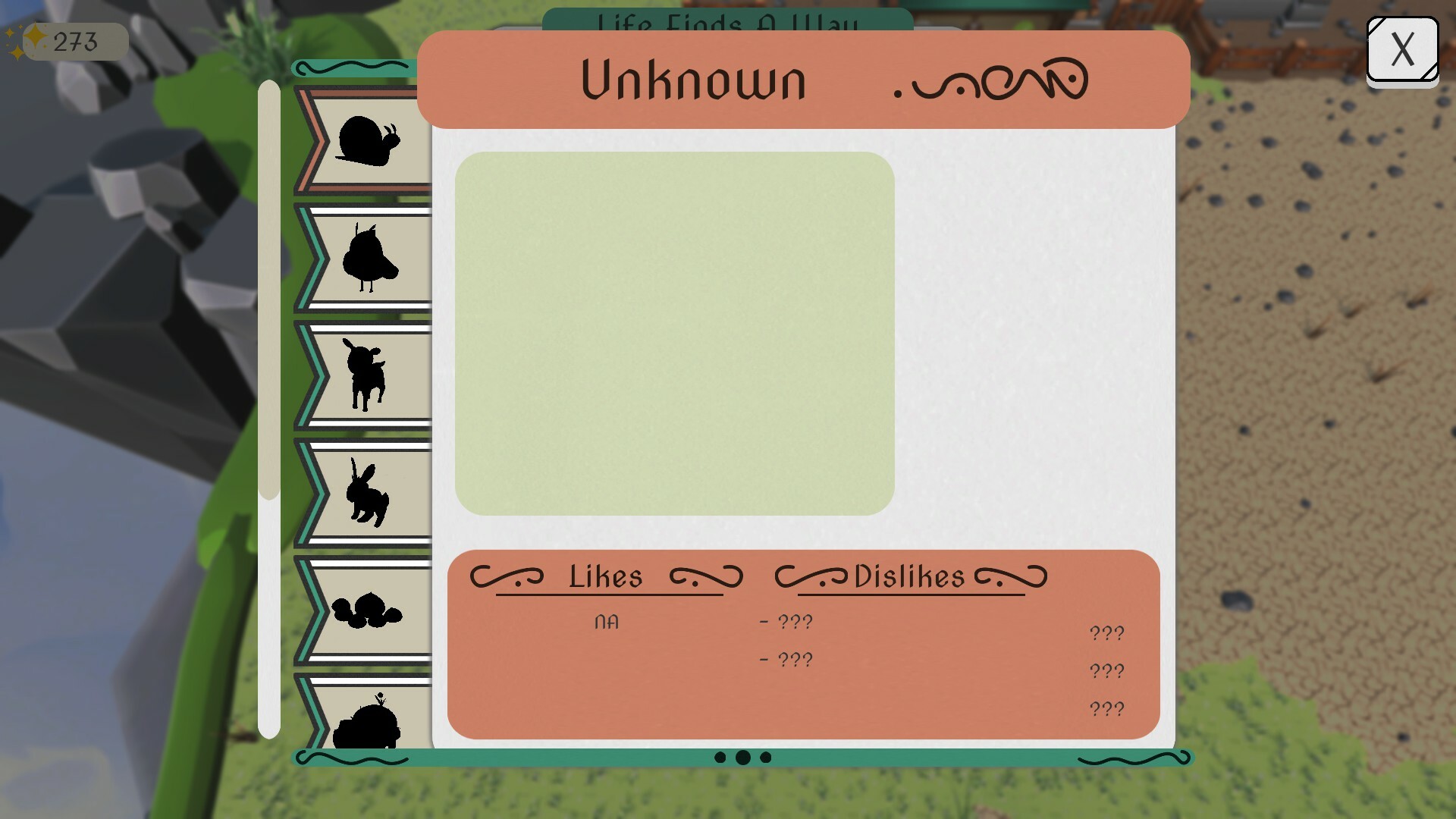 The biggest part of the game UI will be the in-game book, or "Field Guide", whose purpose is for the player to discover and make notes on every Skylet they find. Our hope is to make the Field Guide feel like a dietetic book that the player will use to progress through the game, therefore over the coming weeks you will see the UI grow into a more recognisable book aesthetic.