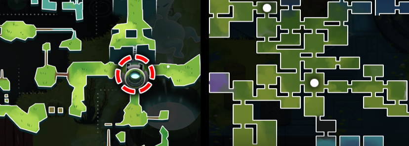 I couldn't decide between the more modern style detailed map (like in Hollow Knight or Ori), or the more classic block style (like in Super Metroid or Castlevania)... So I did both! You can seamlessly switch between both map styles. I find the classic block-style map is more useful for long-term planning, and figuring out which areas to explore next. And the zoomed in detailed map is more useful when looking around your immediate area.