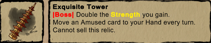 The Exquisite Tower has been reworked, no longer restricts the number of cards to be played, but puts a Amused card into your hand every round.