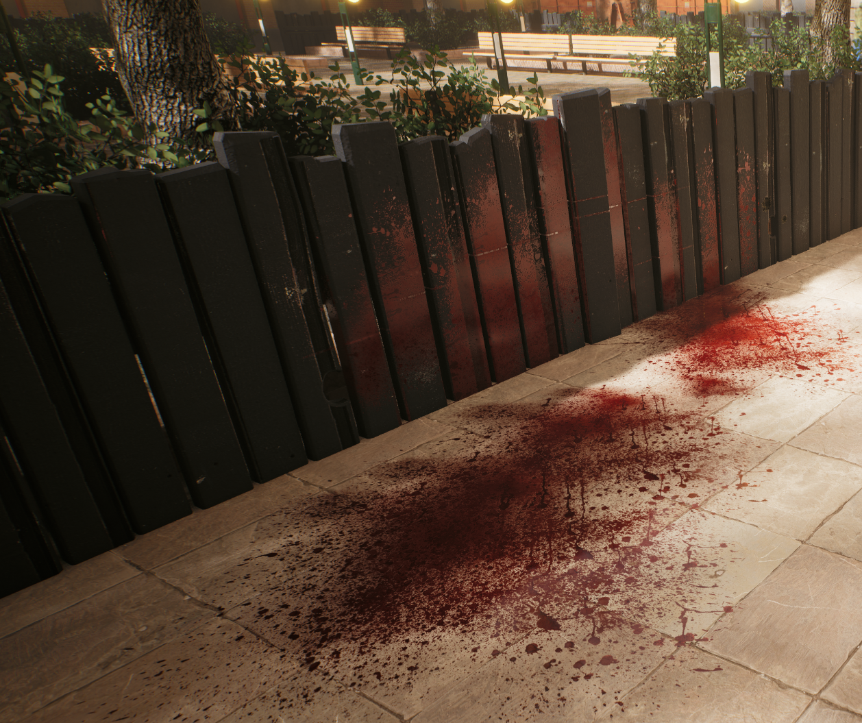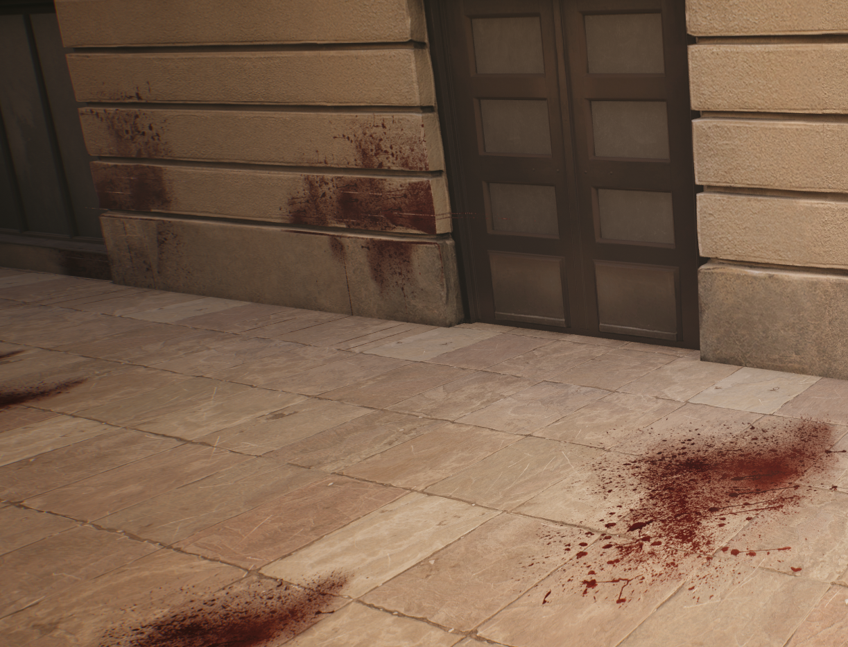 Blood splash spawns away from hit characters, like if it was in realtime, to give more actions on shooting players. Can be turned off in Graphic Settings.