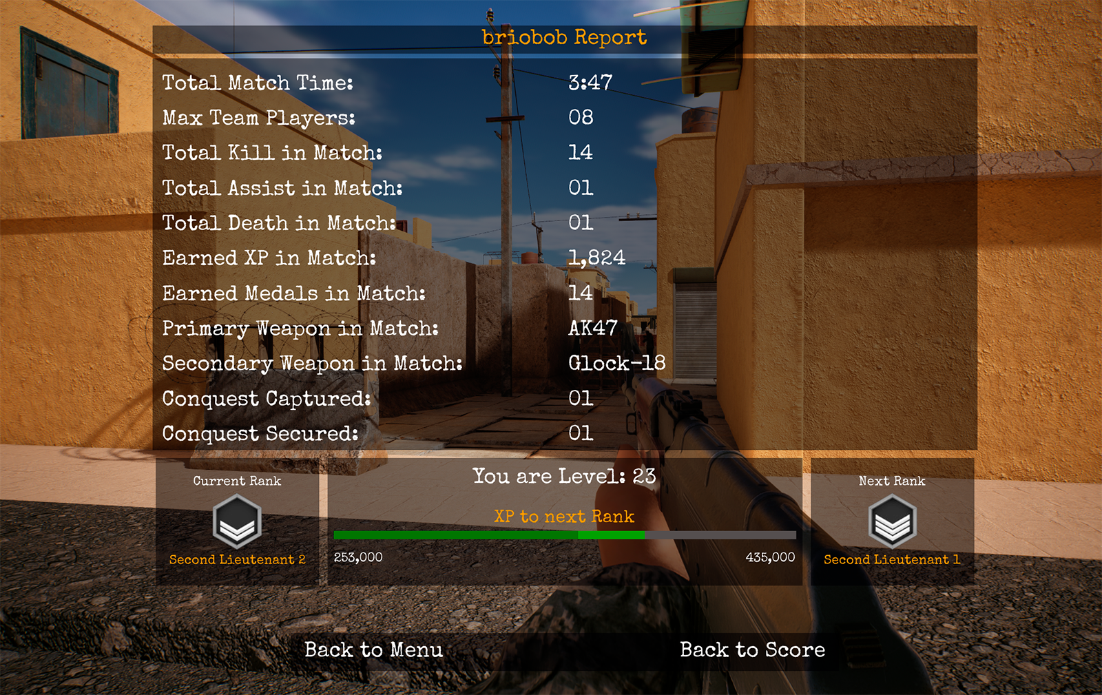 Player Report after end Match. See the details of your progress in the current Match.