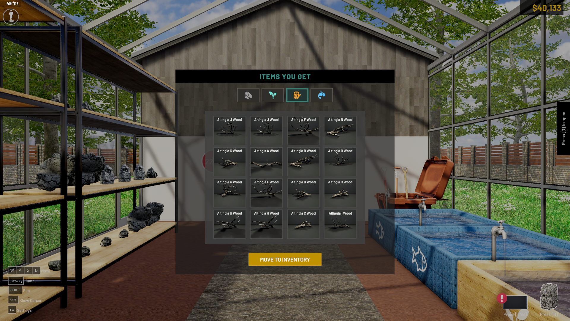 One of the vital aspects of Aquascape Simulator involves venturing into the wilderness to discover various hardscapes, fish species, and aquatic plants. Throughout your explorations, you will acquire an array of items that hold the potential to enhance your aquascape. However, these items cannot be used immediately; they must be transferred from your bag to the inventory.