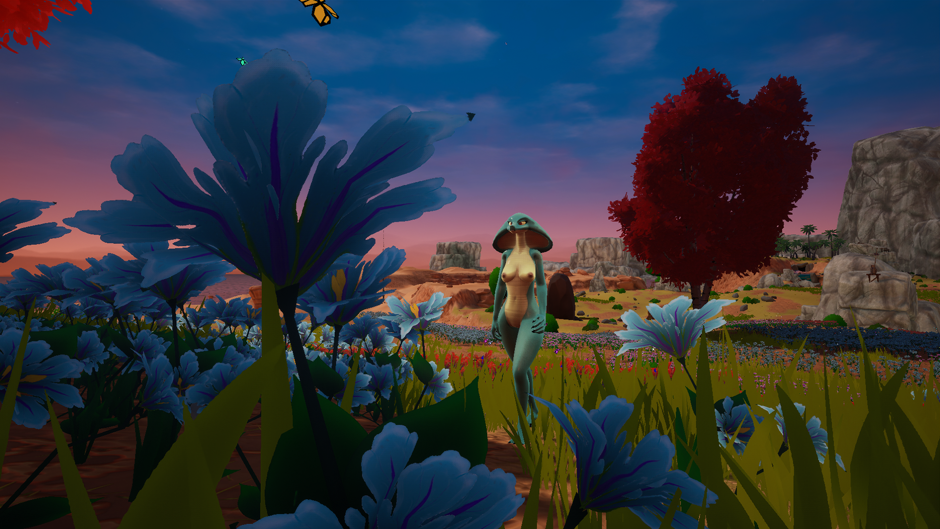 Floating in a currently unannounced area of remote ocean is Sapphire Island, home to a whopping 6 surface-level biomes that the player can (in the entire completed version of the game that is) explore at their leisure. Our focus from now, until our Early Access launch on Steam is the first area—the Plains. Rolling green hills, broken up with a spattering of rocky cairns, home to 9 total species of Monster Girl. The Plains are roughly 1km x .5km in size, offering a decent variety of landscapes and backdrops for photo opportunities.