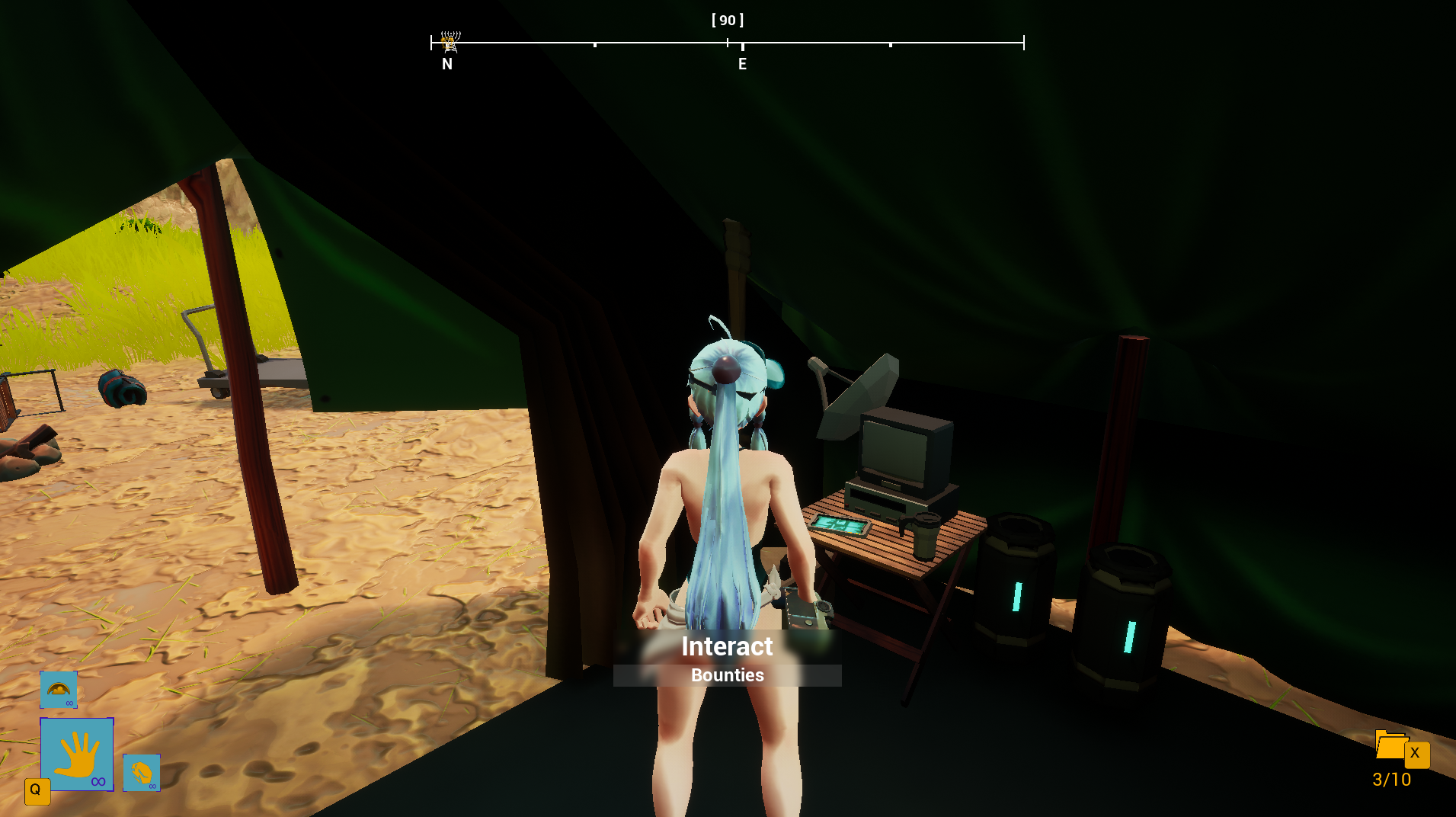 Found within one of the tents in the Campsite is the bounty computer which will offer the player a chance to find and take randomly generated photo quests. These can be submitted via the photo submission tool and the rewards claimed back at the same terminal.