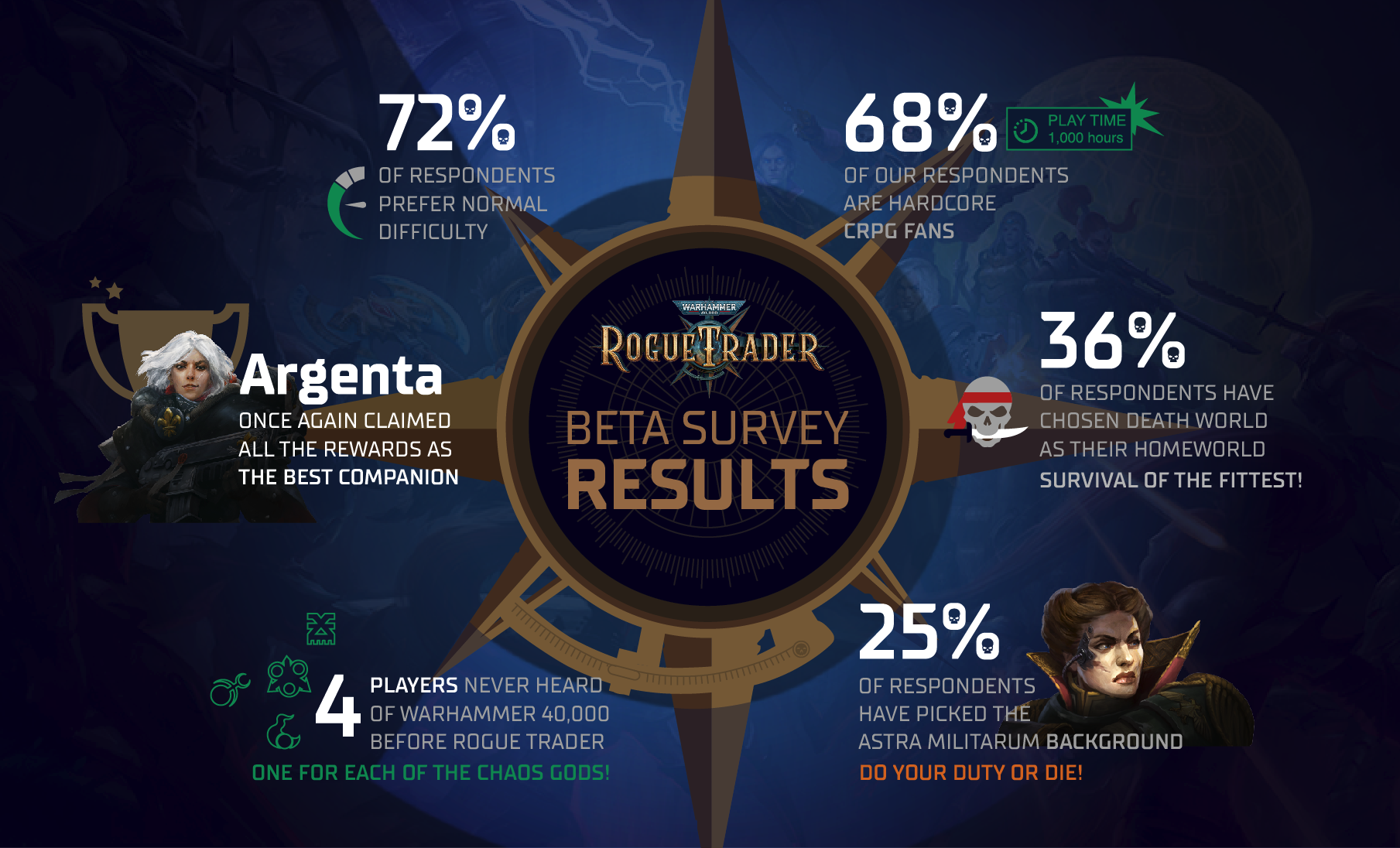 A total of 5000+ players have taken the survey, and they rated Warhammer 40,000: Rogue Trader 4.3 out of 5!