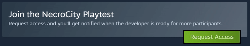 It is very simple, let us explain that step by step: 1. You must be logged into your Steam account. 2. Then go to the game Steam page. 3. Scroll a little lower on the Steam page 4. You will see the banner like below, and click the green button "request access"