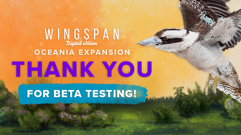 We wanted to drop a big thank you for joining us in testing out the Wingspan: Oceania Expansion on Steam. Your participation has been awesome, and your feedback is gold to us as we fine-tune this expansion for the great release.