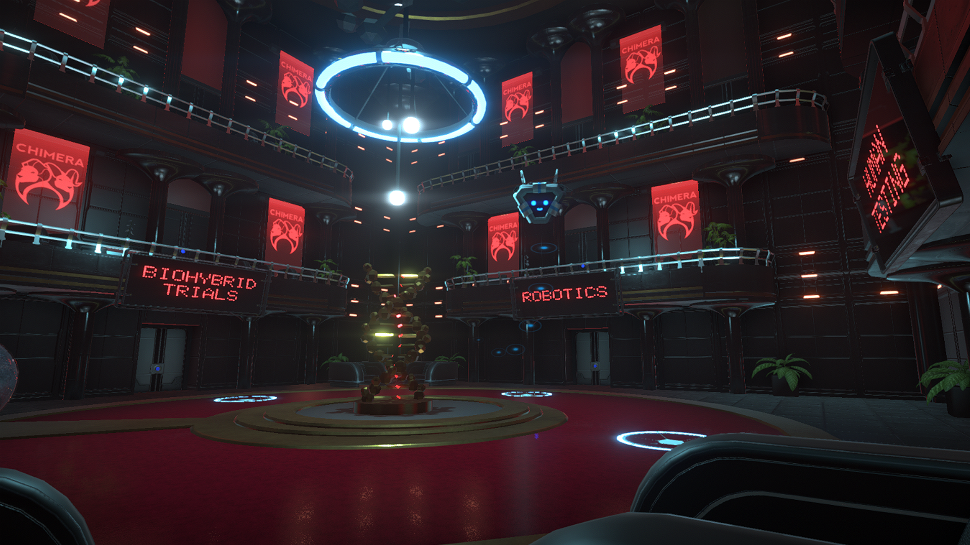 The clandestine department with the very normal name of "Special Projects" houses some of the most dire creations of the Chimera corporation. Fortunately, you have help in the form of a hacked NAV-E drone, courtesy of the the Client. Make your way through the Biohybrid Trials, Human Testing and Robotics wings to unlock a path to the floor below!