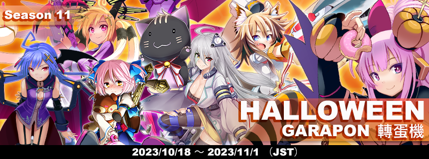 A limited-time Garapon featuring Halloween themed characters is now available! The gold tier humanoid robots will feature Halloween exclusive hair colors! Perform a 5x roll of the Halloween Garapon to get an extra roll of the Bonus Garapon!