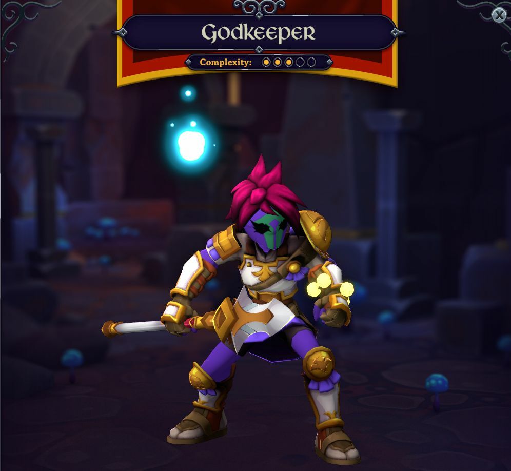 The Godkeeper fights to defend the written Gods of Yore using their divine Purespear to keep their opponents at bay.