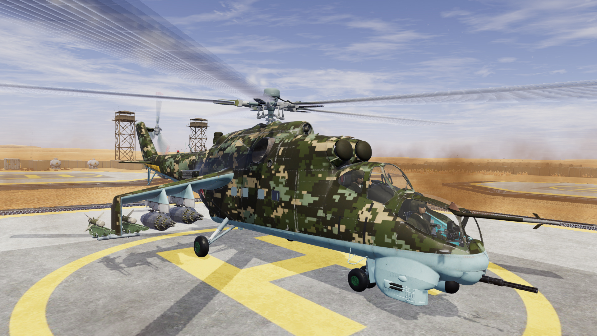Flight model is as you'd expect, the Hind is heavy so takes a while to get up to full speed and, with landing gear retracted, you'll be seeing 180kts even when fully loaded. It is also a well balanced helicopter and quite easy to fly, you just have to learn to maintain speed when turning.