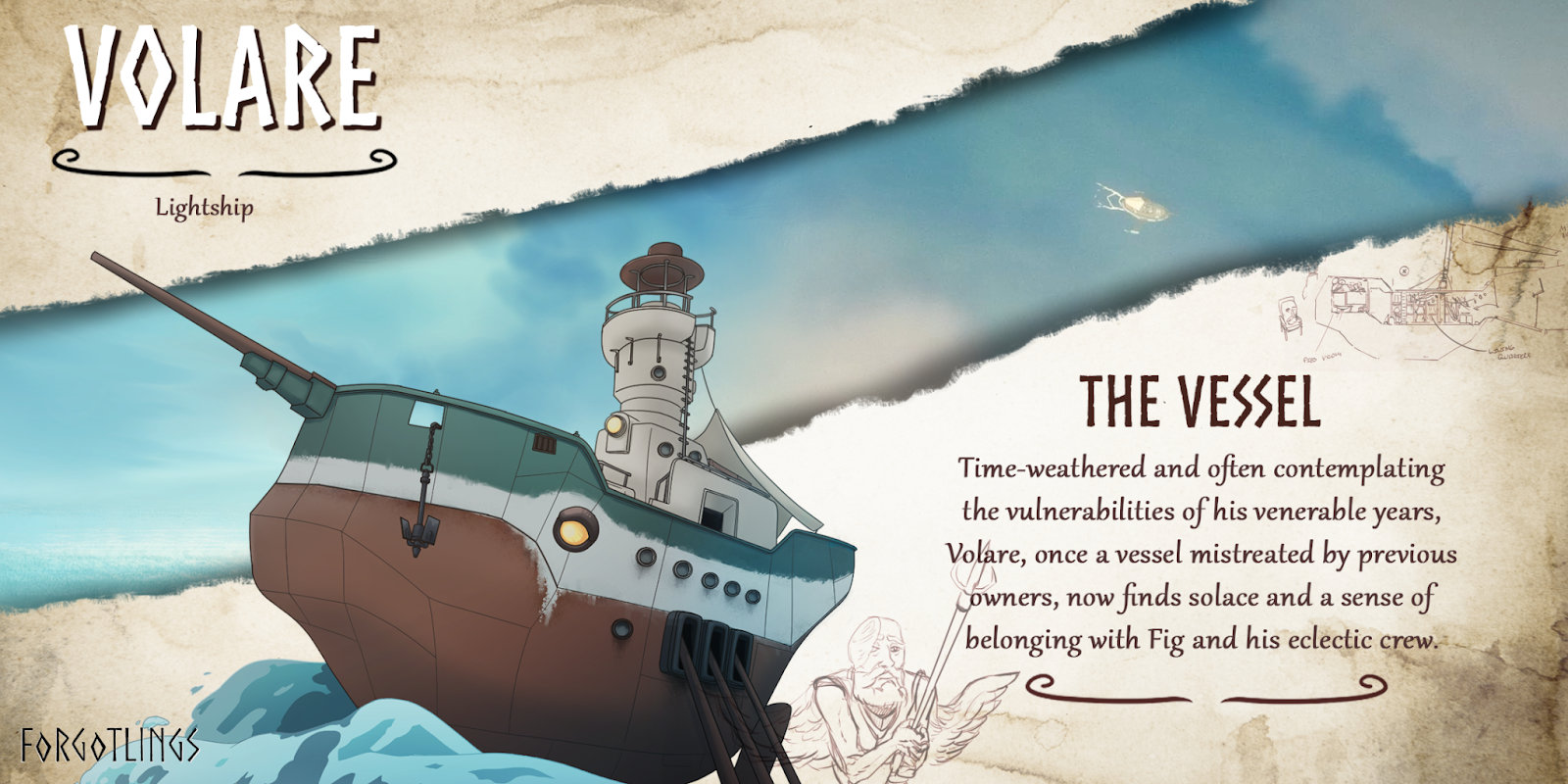 Fig starts the game as a naive new spawn, exploring the world around him in nearly child-like wonder – and with so much out there to explore, our hero takes to the seas as the captain of a ship. As he journeys on, he quickly learns of the realm's five tribes… and before long, stumbles upon remnants of an ancient Forgotling civilization and whispers of the past.