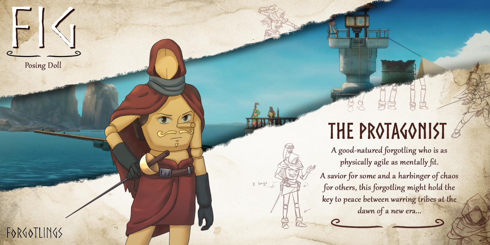 In the Forgotten Lands, a realm beyond our own, everyday objects transform into something more special, waking with newfound consciousness and becoming Forgotlings! But Fig, a posing doll, is even more extraordinary than that: he’s a Shooting Star, a rare sort of Forgotling that descends from what their world calls “The Ether”. Shooting Stars often possess vivid memories of their past lives as cherished objects in the human world – something which connects in our story to the face you see drawn on Fig's chest.