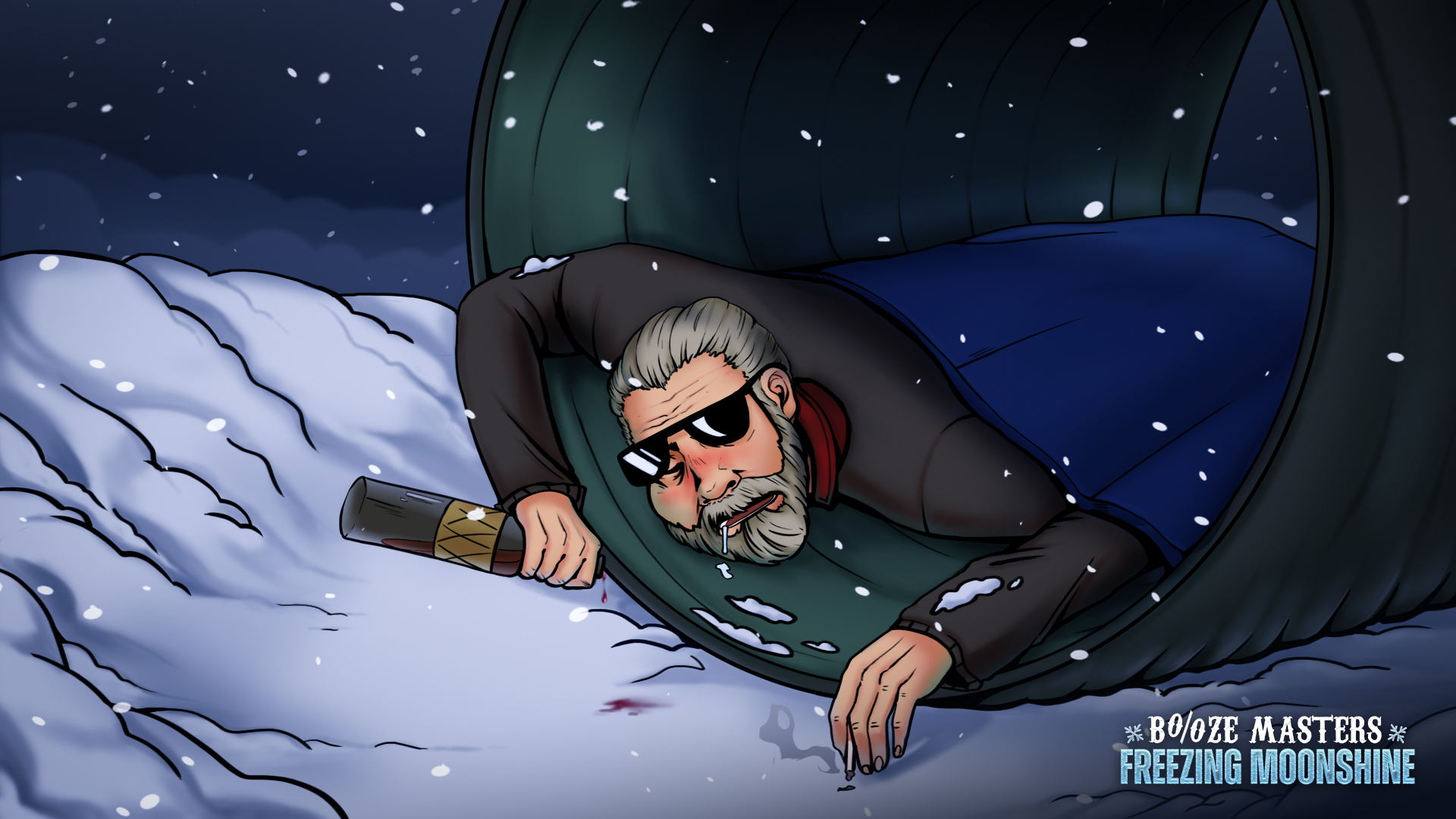 We have some bad news. After the release of the Booze demo we got a bit carried away. We got terribly drunk and partied until five in the morning. The film dropped us in the subway and now the cross is collapsing. We got some sleep and in the morning we realised how much more work we had to do. So it is with sadness that we announce that you will have to wait a little longer for the full version of Booze Masters: Freezing Moonshine. For how long? Until 13 December, not so long at all. We don't want to give you an average game, but one that will blow your mind and keep you coming back for more, like an alcoholic after a failed rehab. We apologise for the slight delay and promise to improve - you know us, after all. To make up for it, we have prepared a new teaser for you. We hope it will sweeten the vodka-bitter news for you.