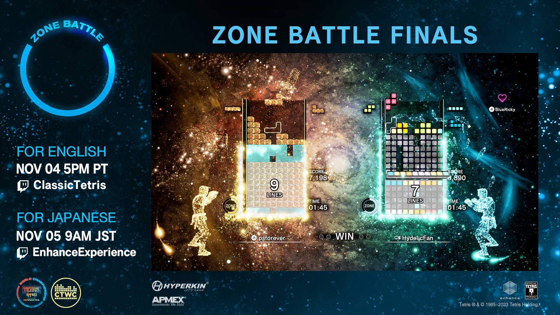 The Tetris Effect: Connected World Championship ZONE BATTLE event officially kicks off on Nov. 4, 5:00 AM PT for Time Slot 1 and Nov. 4, 12:00 PM PT for Time Slot 2.