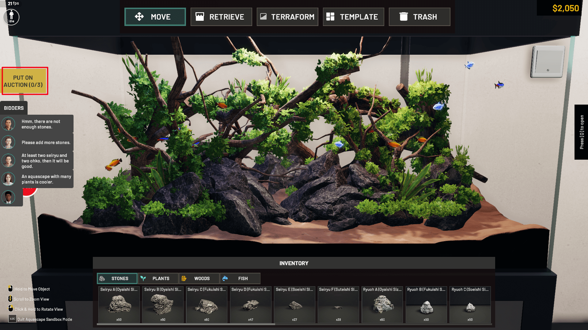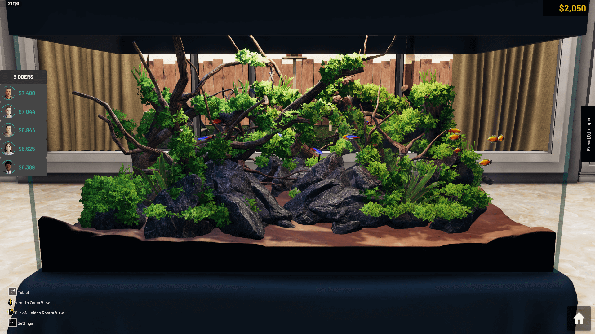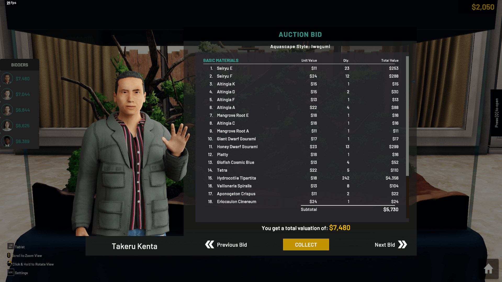 Once you've initiated an auction, you're in for an exciting bidding war. Five enthusiastic bidders will vie for your magnificent aquascape, each making an offer based on their preferences. They'll state how much they're willing to pay for your creation. As the creator, you hold the power to carefully evaluate these offers and decide which one best suits your vision.