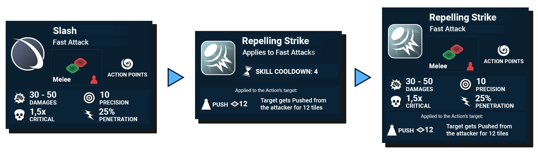 Repelling Strike adds the Status Effect Push to the attack, allowing the character to move opponents and possibly allowing allies to land Opportunity Attacks on them.