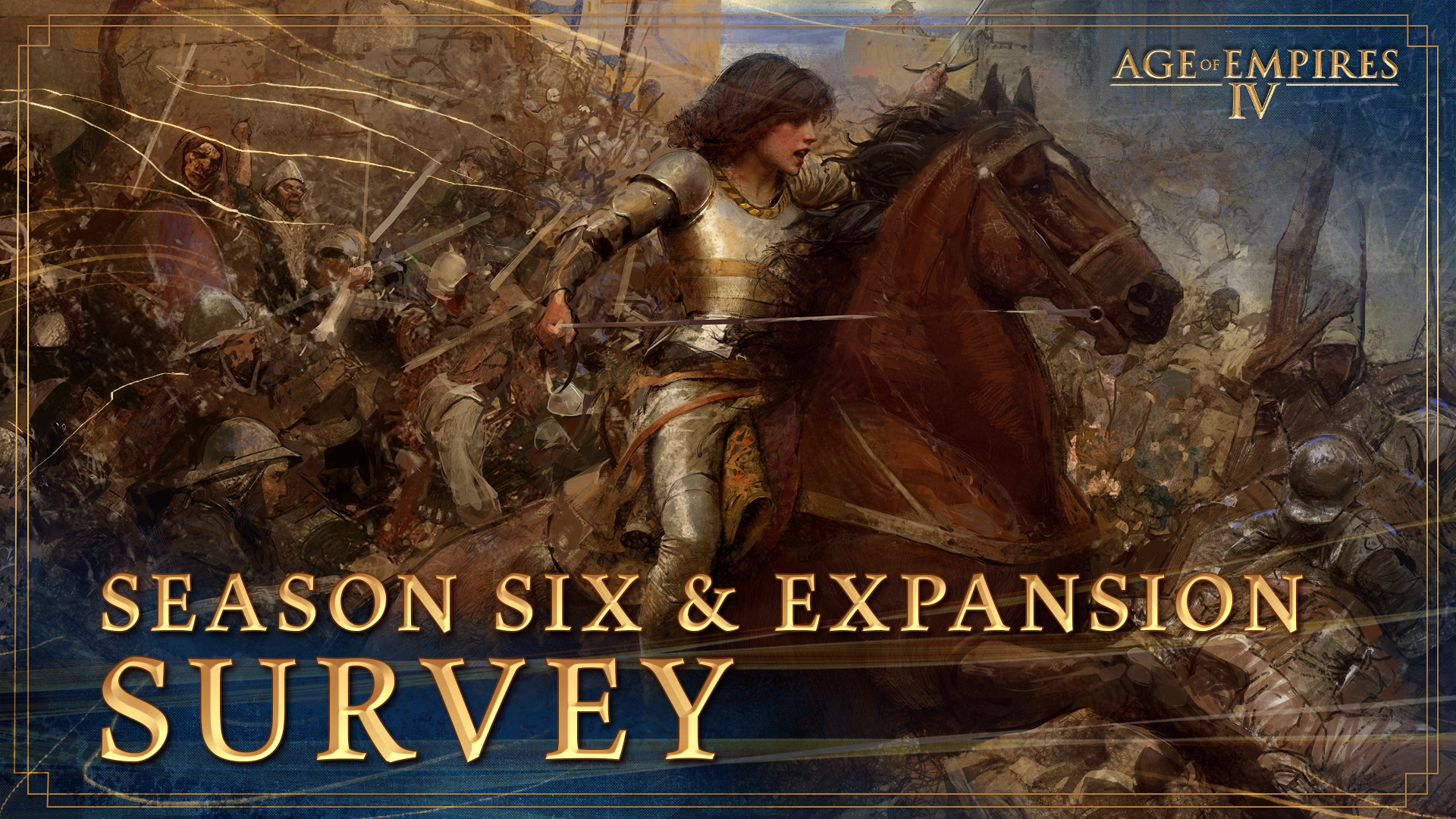 A new survey is available for Age of Empires IV! We're excited to hear your thoughts about Season Six and the new expansion and use your feedback in developing future content for the game.