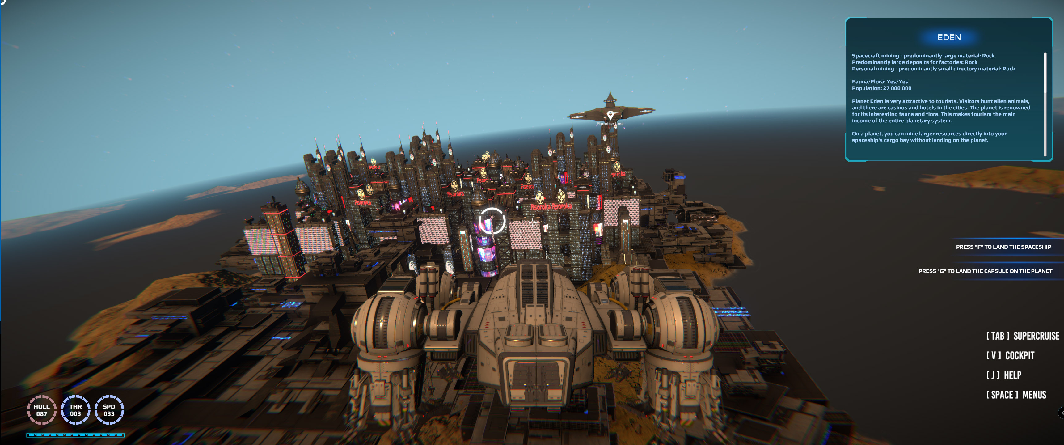 Infinity has a large cargo and very good other parameters. It's so big that you can move around inside it using hover. Since you can't easily land on all planets due to the size, you can also use a fast capsule landing.
