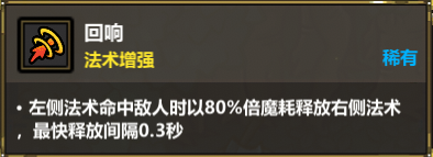 Added Spell 4: Echo Left and right nested spells, example from the following build. When a Disintegration Ray hits an enemy, it will continuously release Echoing Flying Blades at 0.3 intervals. This spell is currently recommended to be built as a persistent spell as a left side spell.