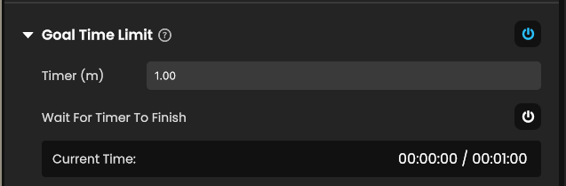 Setting a goal time limit will set a time limit before the trigger resets. This means that number of commands sent has to reach that target before it fires off. If the goal is not reached before the timer expires, then everything resets.
