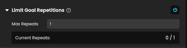 Setting this limit will disable the trigger once the goal is met, preventing anyone else from using it. This can be useful to limit special interactions to a single or small number of uses.