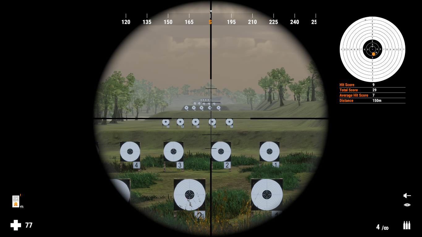 Gun range can be used in multiplayer too so you can have a shooting competition! In the top right corner you will see the last hit on a target along with total and average hit score. You can reset your score with the machine at the shooting place.