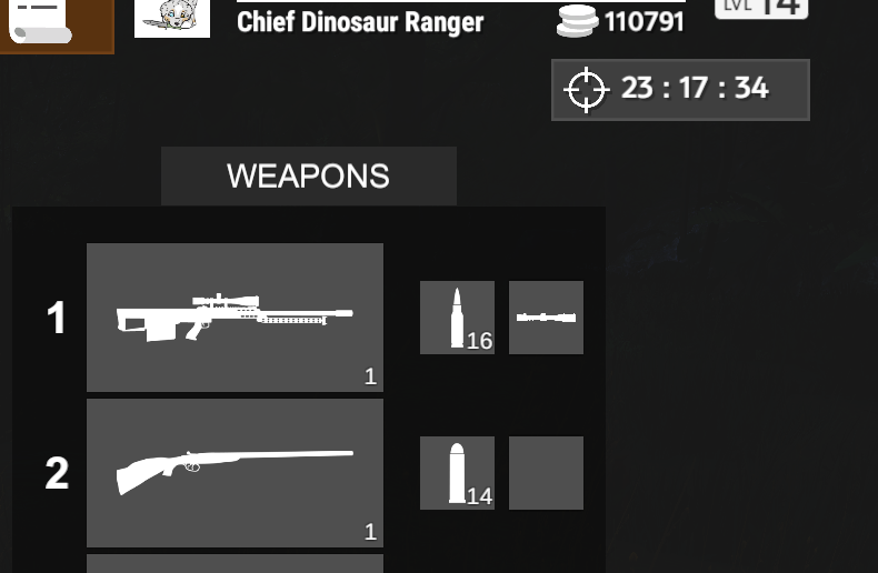 Players can now practice their shooting skills on a gun range (without the need to go to it through the tutorial). It is a separate map that’s completely safe and absent of any dinos. You can shoot with any weapons you currently own. Bullets are free at the gun range so you don’t use any of your own ammunition while in the gun range (infinite mark is shown in bullet amount). The gun range has five shooting places each with their own targets. The targets are at distances of 30m, 50m, 150m, 300m, 500m and 1000m.