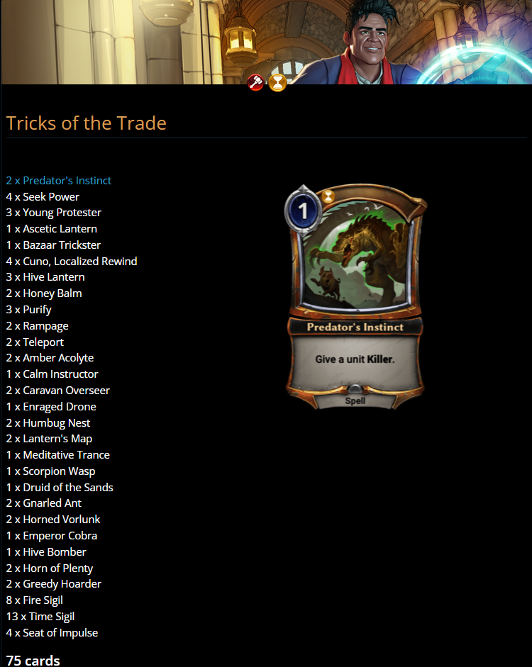 Tricks of the Trade Theme deck 4x premium copies of each of this Chapter’s Promo Cards A Unique Premium Avatar: Cuno, Localized Rewind