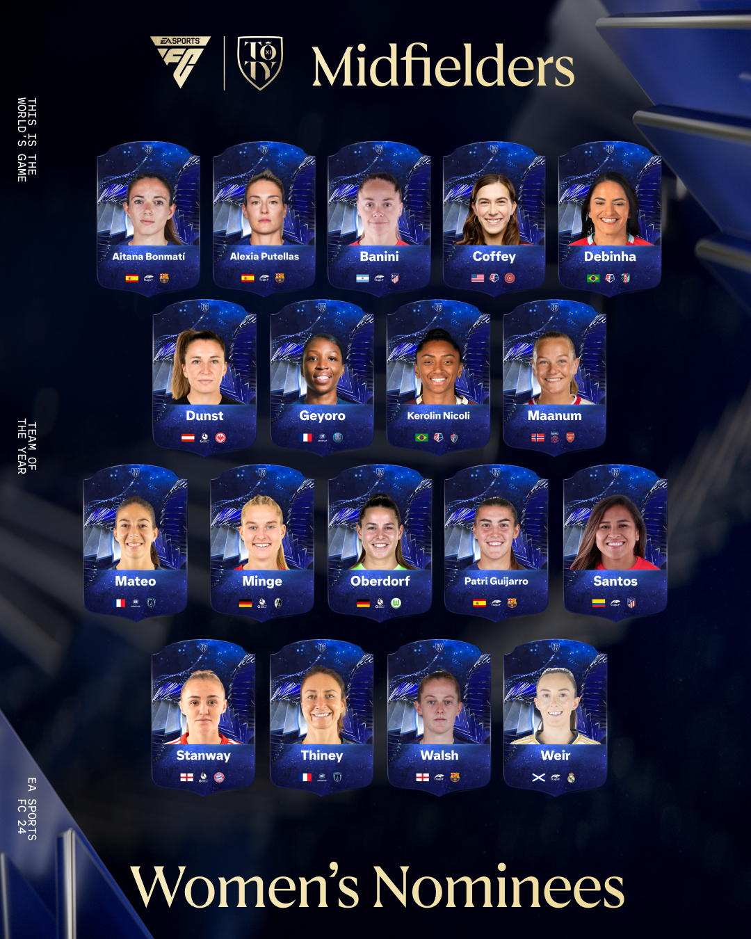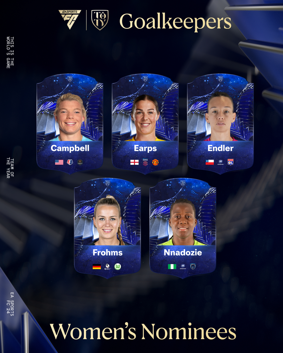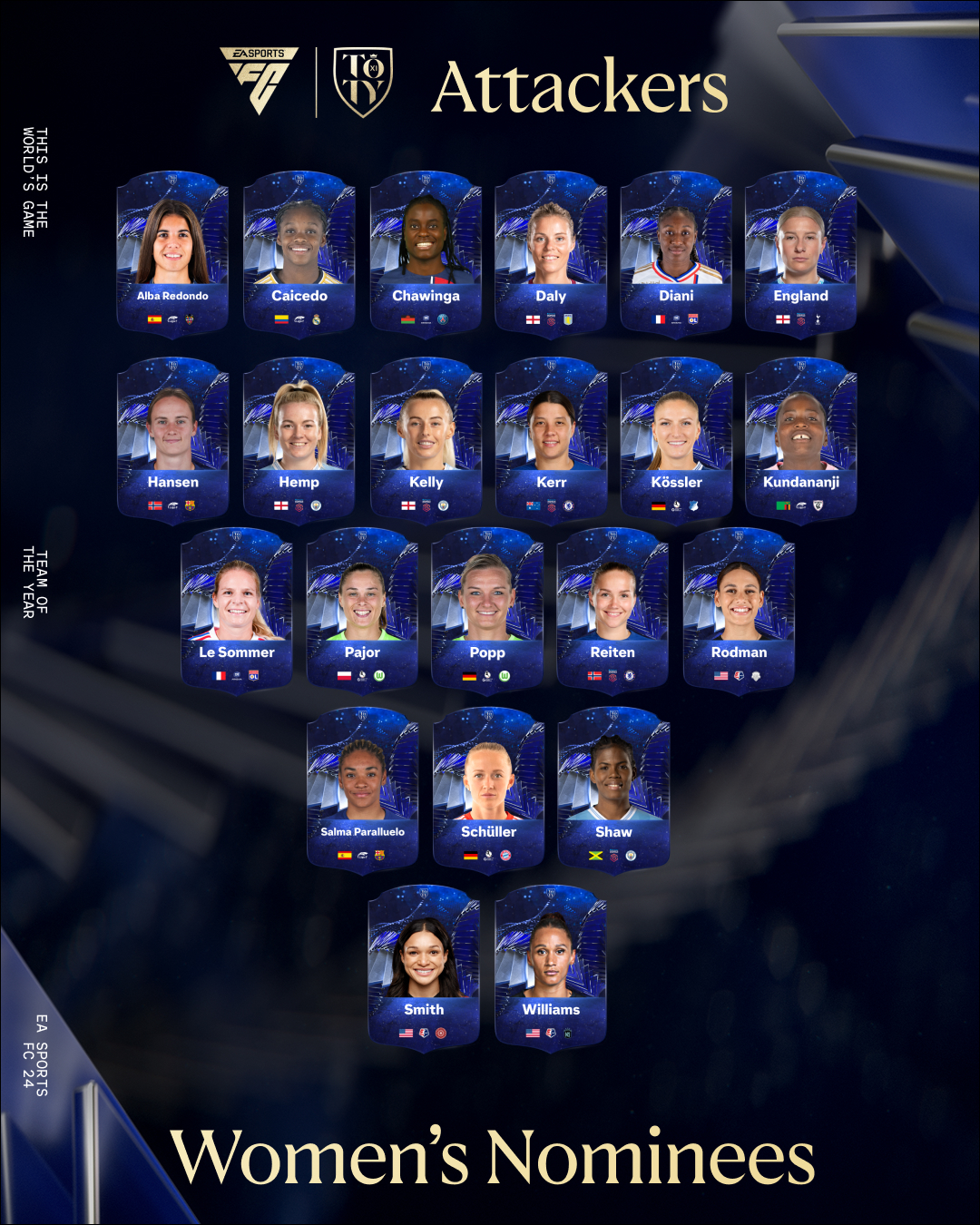 Team of the Year is here including the introduction of standout performers from women’s football nominated for the first ever EA SPORTS FC™ Women’s Team of the Year. Prepare to vote for your Men’s and Women’s TOTY from 8 January.