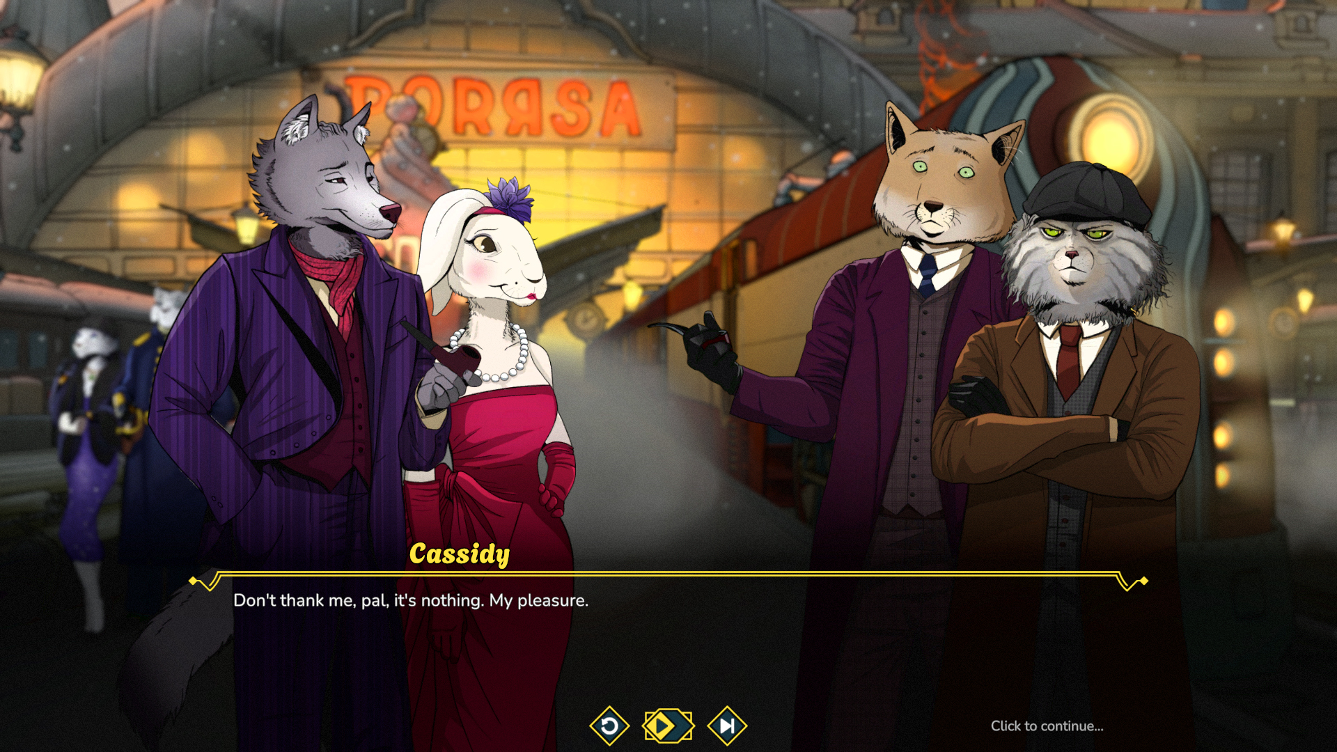 Moses and Plato is a thrilling detective adventure game in which you'll meet 12 suspects, interrogate them in depth, and learn their most closely guarded secrets as the train (with several stops) travels across the Wilderness.