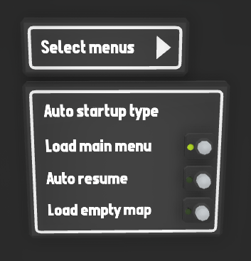 When the game starts, you can either load the main menu, automatically resume your last save file, or even load an empty new game map.