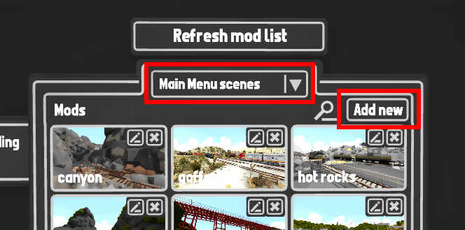 A "main menu scene" is treated just like any other mod (like a train or prop), so you can create your own ones in the Modding Manager from the pause menu:
