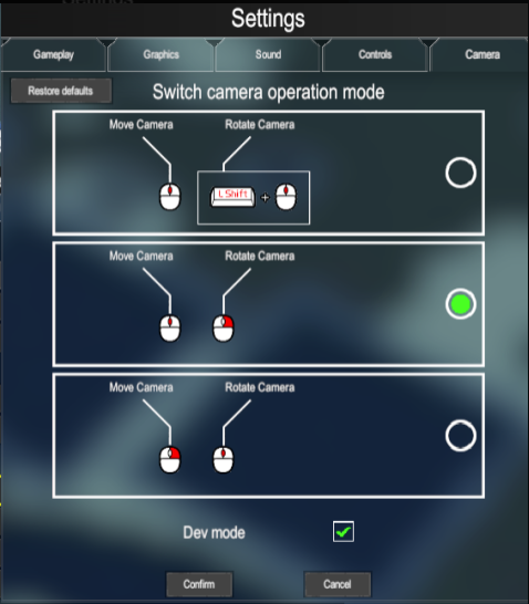 Camera movement and rotation controls can now be switched between three different modes.